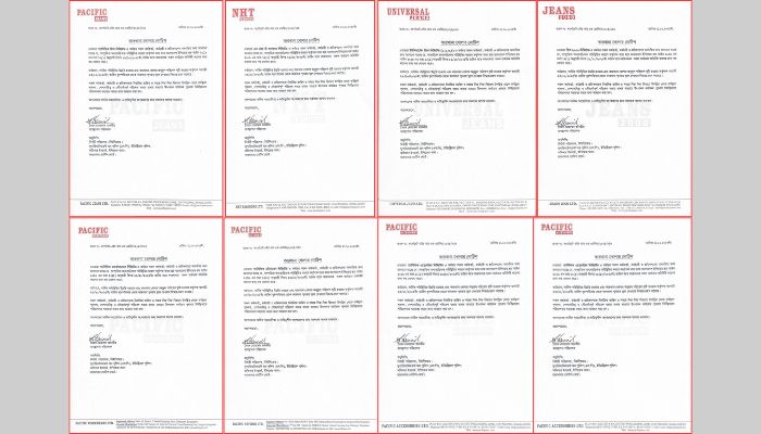 কারখানাগুলো হলো— প্যাসিফিক জিন্স-১, প্যাসিফিক জিন্স-২, প্যাসিফিক অ্যাটায়ারস, প্যাসিফিক অ্যাক্সেসরিজ, প্যাসিফিক ওয়ারকওয়্যারস, ইউনিভার্সেল জিন্স, এইচটি ফ্যাশন ও জিন্স ২০০০।