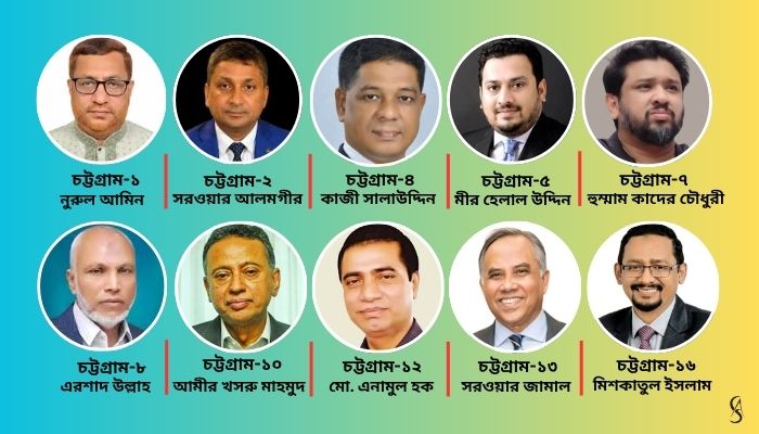 এছাড়া চট্টগ্রামের ৬টি আসন বাকি রেখে ১০টি আসনে প্রার্থী চূড়ান্ত করেছে বিএনপি। তারা হলেন- চট্টগ্রাম-১ (মিরসরাই) নুরুল আমিন চেয়ারম্যান, চট্টগ্রাম-২ (ফটিকছড়ি) সরোয়ার আলমগীর, চট্টগ্রাম-৪ (সীতাকুণ্ড) কাজী সালাউদ্দিন, চট্টগ্রাম-৫ (হাটহাজারী) মীর হেলাল উদ্দিন, চট্টগ্রাম-৭ (রাঙ্গুনিয়া) হুম্মাম কাদের চৌধুরী, চট্টগ্রাম-৮ (চান্দগাঁও-বাকলিয়া) এরশাদ উল্লাহ, চট্টগ্রাম-১০ (ডবলমুরিং-হালিশহর-পাহাড়তলী) আমীর খসরু মাহমুদ চৌধুরী, চট্টগ্রাম-১২ (পটিয়া) এনামুল হক, চট্টগ্রাম-১৩ (আনোয়ারা) সরোয়ার জামাল নিজাম, চট্টগ্রাম-১৬ (সন্দ্বীপ) মিশকাতুল ইসলাম চৌধুরী পাপ্পা।