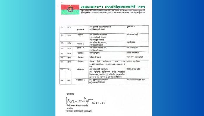 বৃহস্পতিবার (৪ ডিসেম্বর) বেলা পৌনে চারটায় রাজধানীর গুলশানে বিএনপির চেয়ারপারসনের কার্যালয়ে আয়োজিত এক সংবাদ সম্মেলনে দলটির মহাসচিব মির্জা ফখরুল ইসলাম আলমগীর এই প্রার্থীদের নাম ঘোষণা করেন।
